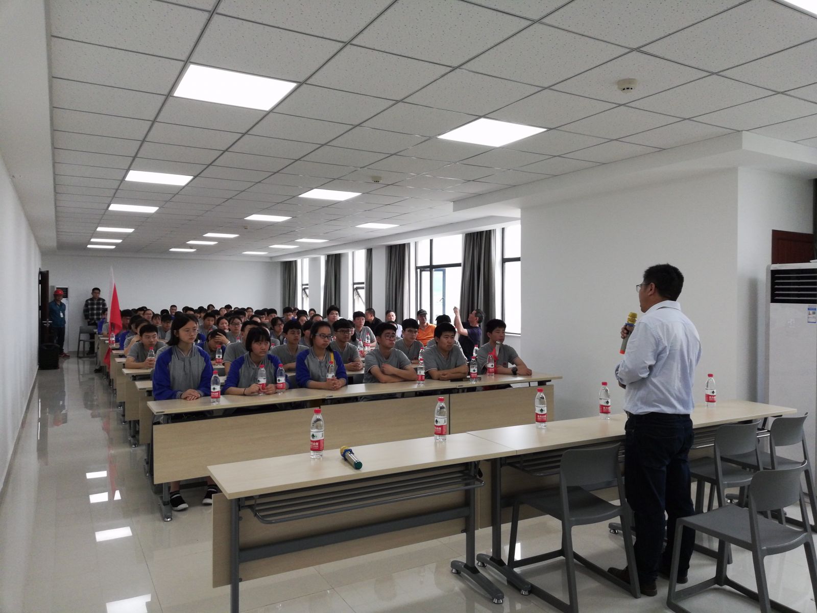 2019年5月19日上午,百年名校严州中学梅城校区校长吴志芳及导师团带领2018级致远班师生共计82人到公司参观学习,总经理吴建华全程陪同介绍并做了励志演讲,使同学们了解了公司的企业文化、近距离的接触和了解了高端实用的科技知识,尤其是总经理吴建华传奇的自身求学经历和创业历程,使同学们深切感受到眼前学习生活的来之不易,提高了学习动力,坚定了他们的学习信心,更加切合实际的去规划学业和人生。